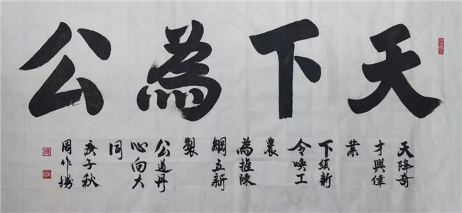 周作柽自幼酷爱书法,直到耳顺之年仍临池不辍,楷、行、草、隶、篆诸体皆临,做到格物致知,锲而不舍;博采众长,熟而能生;俯仰向背,避就朝揖;注重师承,坚持创新,使书写的各体字较好地传承传统书法艺术风格,做到笔力苍劲,方圆洒脱,疾涩有度,劲健遒丽,气贯笔端。尤擅龙、福、寿、祥、静、禅、佛、德、孝等字榜书,且草、篆、隶、行、楷都相得益彰,既注重实用性,又突出观赏性。除此之外,其他作品也曾多次参加全国书画展并屡次获奖,主要有:“繁荣文化,发展经济”(行草,作品及证书附后)荣获2002年纪念毛主席《在延安文艺座谈会上讲话》发表六十周年书画展二等奖;“发展才是硬道理”(行草,作品及证书附后)荣获2004年纪念小平同志延辰100周年暨中华书画精品展银奖;“龙行天下,魂系中华”(篆书,作品及证书附后)荣获纪念辛亥革命100周年书画活动优秀奖;荣获2016年第七届“羲之杯”全国诗书画家邀请赛二等奖;荣获2016年全国第十六届庐山杯书画大赛银奖;荣获2017年第四届“伟人颂·中国梦”全国诗书画大赛一等奖; 2018年全国诗书画家创作年会一等奖; 2019年第七届中国梦想杯诗书画大赛金奖; 2020年中国当代作家书画家代表作文库一等奖; 2021年庆祝建党100周年全国文艺家精品大系特等金奖(获奖证书和奖杯均有证书收藏) 。获奖作品分别被香港书画家协会、广西壮族自治区博物馆、新加坡经济贸易商会会馆等文化机构和美籍华人鲁得利、杨文财先生等国际友人收藏。2017年经中国书画职称润格评定中心专家评定并颁发作品润格证书(证书编号:A0756)。书法作品国内市场价每平尺6000元至12000元; 国外市场价每平尺1000美元至1200美元。现聘为中国岳飞文化促进会会员、中国硬笔书法协会会员(会员证编号:2016031329)、北京华夏兰亭书画院院士(院士证号:A0615)、《羲之书画报、诗书画家艺术报》签约诗书画家、北京华夏道德汇谷书画院院长。