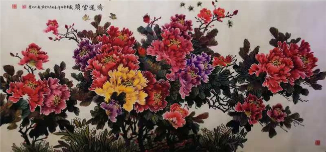 左光生作品《华堂富贵冠群芳》200cmx80cm