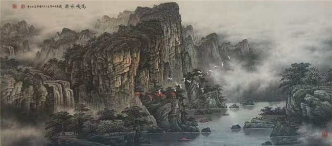 左光生作品《青山碧水春运来》244㎝x108㎝
