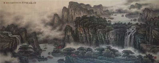 左光生作品《金山矗立银河湾》300㎝x118㎝