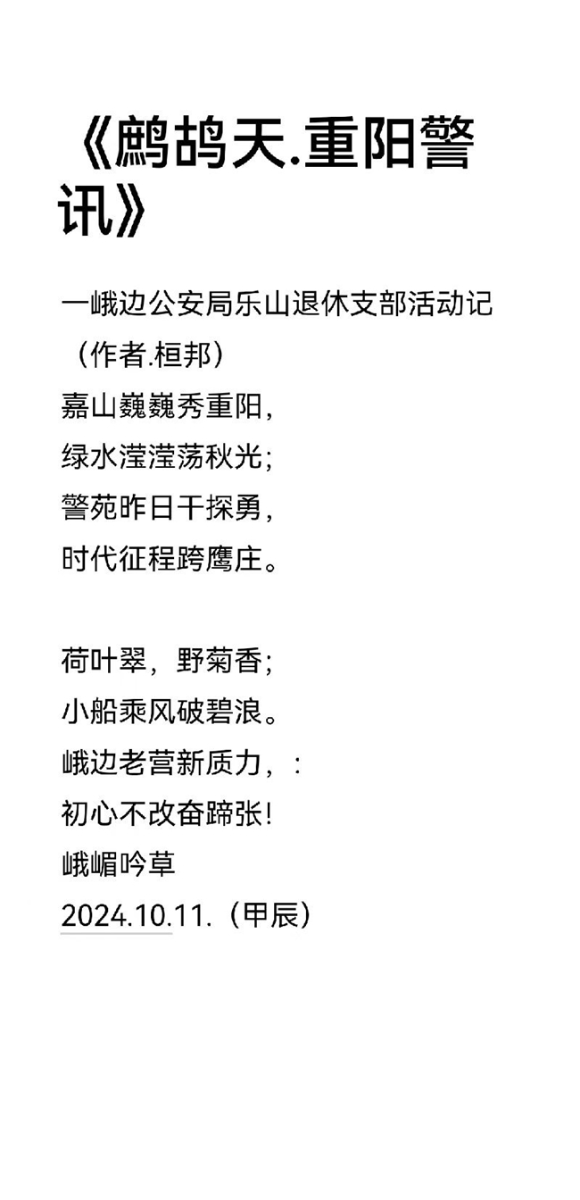 2024年3月受邀为世界非物质文化遗产研究院特聘院士(证书编号:yo618);在《墨香雅集》诗词大赛中获“文化传承先锋”称号;作品《卜算子、春水》、《长相思、枯林》、《钗头凤、沫水流》等15首古体诗词被智慧国潮艺术研究院特刊收录;《新质群英秀》《时代精英》被国礼文化时代典藏特刊收录;作品《虞美人.嘉山秋色》等21篇作品被中国艺术文献组委会收录编入《中国艺坛五大家》(中华书籍出版社);作品《新质群英秀》《南海怒潮》《南海雄鹰》《水龙吟.庚子嘉州》《神州百年党旗红》等32首古体诗词被CCTV国际艺术在线推荐载入《名人堂》专刊;由华夏传统文化研究院报上级批准授与了“新中国成立75周年文艺功勋人物”荣誉称号;获中国文学·诗词艺术首届“金马奖”奖杯;年底作品入选《世界艺术名家档案—历史无声·档案有痕》获收藏证书(世界图书出版社)。