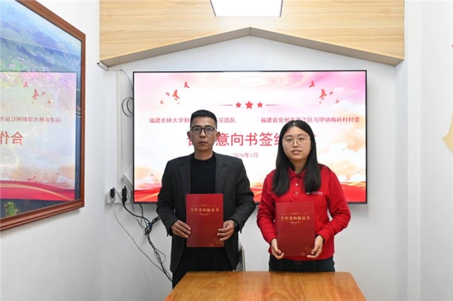 图为实践队与梅岭村签署合作意向书