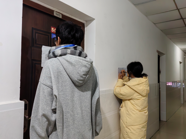 “安全为先、卫生为要、服务为本”,本次查寝范围覆盖了一栋宿舍四五楼层和二栋宿舍的一二楼层。小宿工作人员们统一佩戴工作牌、领取查寝凭证,采取“两人一组、跨楼栋协作”的工作模式,以严谨细致的态度投入工作。