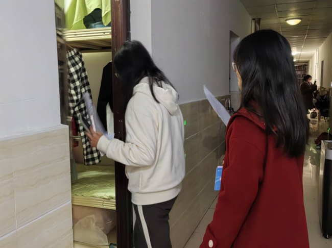 本次查寝活动重点查看宿舍内务整理、物品摆放及卫生死角清理情况,严格排查大功率电器使用、电线私拉乱接等安全隐患。过程中,小宿工作人员们对表现优异的宿舍进行影像记录,对存在问题的宿舍现场指出不足并给予整改建议,并同步填写查寝评分表,为宿舍管理“查漏补缺”提供数据支撑。