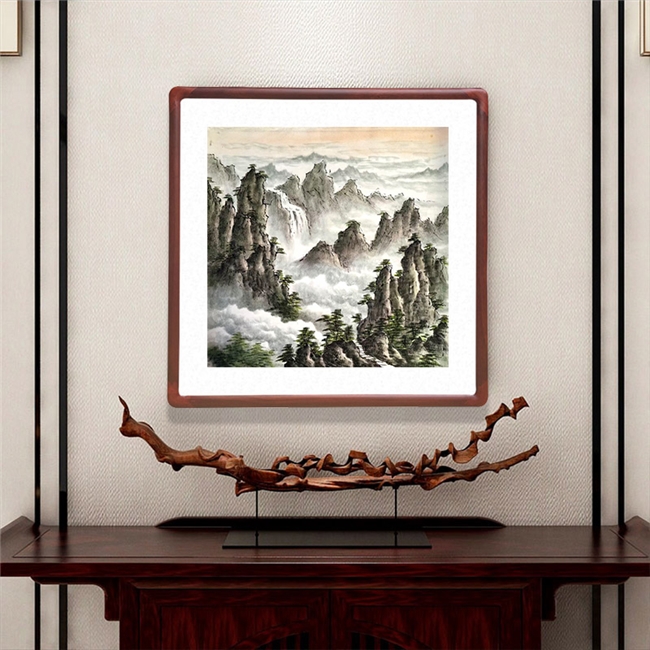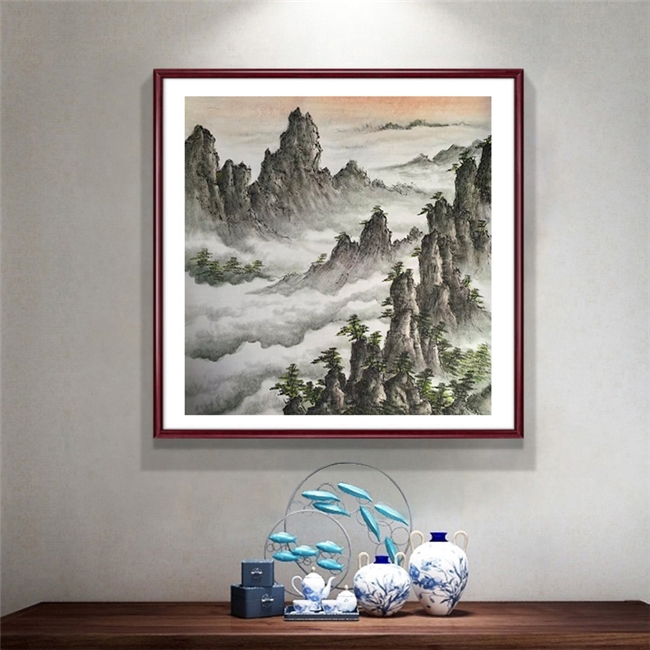 文山先生以中国山水画见长,他的作品水墨淋漓,恢弘壮美,气势磅礴,充满生气。那一幅幅山石坚韧、古树苍劲、溪水潺潺、云烟袅袅的画作,吸引着越来越多书画爱好者的眼球。特别是文山先生作品中的云雾,让观者赞不绝口。他把云的柔美、缭绕、缠绵、朦胧淋漓尽致地融入到苍山翠柏中,浓雾与清烟结合得恰到好处,使观者一眼望去顿生“云烟深处似有仙,山水之间神蕴藏”的神秘之感。