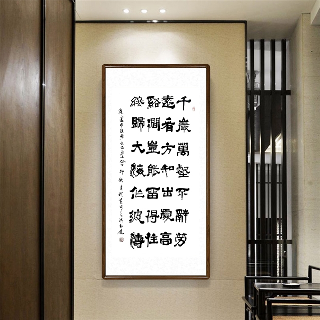 经过多年的学习和提升,他的书法诸体兼善,形体优美流畅、筋骨雄壮凝练,造型新颖,尤其真、草、隶、行、篆、榜书等气势磅礴,给人以美的享受;花鸟画独具风格,色彩淡雅大方,具有清新隽秀、雅素共赏之风格;尤其梅、兰、竹、菊、虾、牡丹、荷花等别具特色。