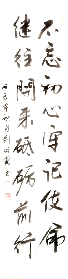 孩提时常在村头田间折枝画沙,染指涂壁,描摹自然,中学时代深得长兄刘少清(中国书法家协会会员,邳州书法家协会理事)点拨,日有所进,初从曹全入手,继而学柳、颜、欧、赵、苏、米、“二王”,旁及张旭、怀素书谱等,学书三十余年,临池不辍。作品曾多次在书法大赛中得奖。
