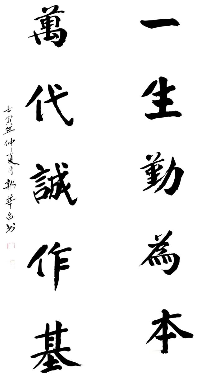 郭华召,男,生于 1945.9.10。中专学历。1971.10加入中国共产党,退休干部,住河南省新密市曲梁镇,本人自幼爱好书法,曾于 1985 年参加河南省书法培训函授楷书专业,工作之余常临颜、柳诸体,尤其榜书,现任河南省书协会员,河南大华书画院院士,中国书画家协会会员,中国国际艺术家协会会员、全国书画艺术委员会高级书法师,常务理事,河南省直书画院副院长。退休后书法作品曾多次参加全国、省、市书展并获奖、收藏。