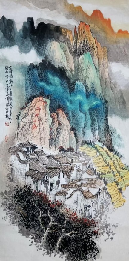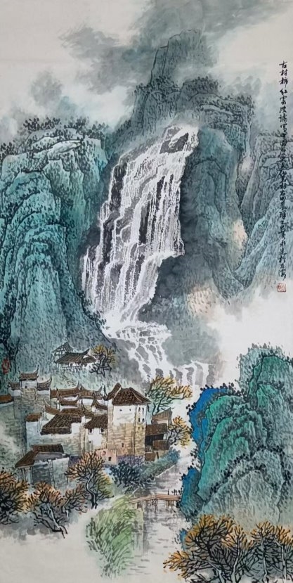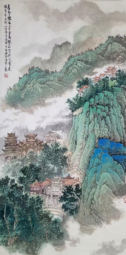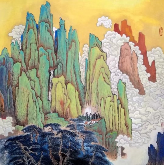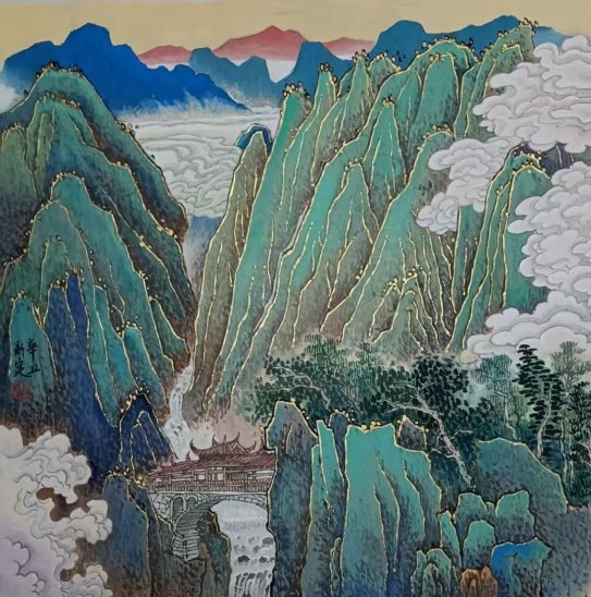 鸳鸯溪纪行(金碧大青绿山水)68cm*68cm