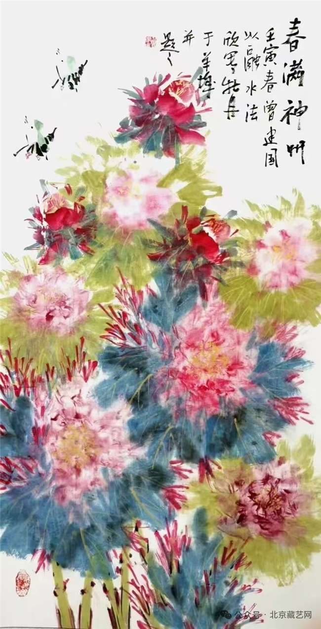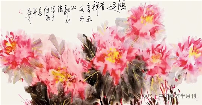凭借独特的牡丹题材创作成就,曾建国先生是一举成为了当代中国画领域内具有代表性的创新大家。他将数十年的诗词、书法修养与绘画实践相融合,最终以融水新法重塑牡丹题材的视觉体系,也让作品完美具备了借古开今的艺术影响力!