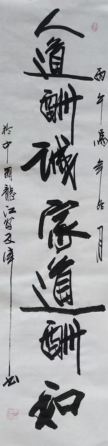 单文军自幼酷爱书法,8岁开始习书,以王羲之、颜真卿、赵孟頫等古人名家字帖为蓝本,临池不辍几十载,承袭古人风韵,刻苦钻研书写技巧。‬曾赴全国各省市与名人名家交流,形成了自己独特的行草书及粗旷流畅的榜书风格。秉承传统紧跟时代,作品苍劲俊雅,力透纸背,气韵生动。
