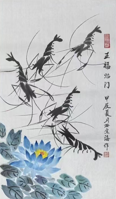 林宗海,号惜石山人,男,1948年生,浙江省青田县人,深受岳父中国工艺美术大师、著名青田石雕国家级非遗传承人倪东方先生的艺术熏陶。上世纪七十年代初开始学习书法、绘画,擅长鱼虾、花鸟等作品创作。现任全国书画艺术委员会和北京华夏巨匠书画院主席。