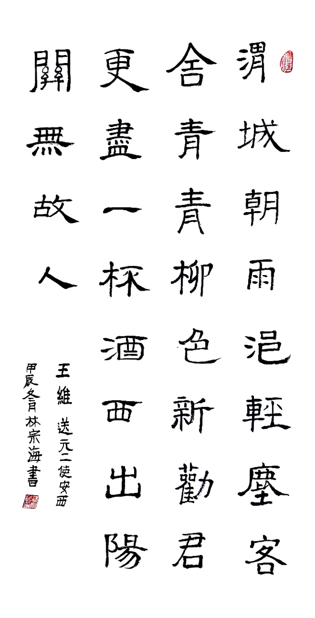2020年11月中央电视台制作《中国骄傲·当代艺坛榜样人物》林宗海先生和范迪安,沈鹏主席印制2021年书画作品台历,金牛贺岁,迎新纳福。2020年12日4日至8日林宗海三幅作品入选中国美术家协会在北京炎黄艺术馆举办《新时代·新气象·新表达·全国新文艺群体美术作品展》。19日收到中国美术家协会颁发的入展证书《清趣》等作品。12月23日国宾礼外事管理中心印制出版《钟南山院士和林宗海(庆祝中国共产党成立100周年)2021年台历》印制完成。封面由中国国宾礼艺术家林宗海先生题词《大国巨匠》。12月25日北京京华阁书画院出版《中国艺术家》林宗海书画专辑,《中国艺术家》是中国文化部潘振宙副部长题词!