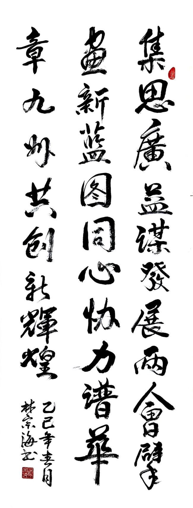 2021年3月林宗海与中国第八届书法家协会主席孙晓云一起出书,书名由中国国宾礼艺术家林宗海书写《时代领袖 艺术大家》,该书由中国艺术文献出版社出版。2021年4月林宗海被入编首批大型精品水晶琉璃册《中国艺坛榜样人物·林宗海》由中国美术档案出版社出版。并颁发《收藏证书》首批走向国际的华人艺术家,有多国驻华大使签字。《中国艺坛榜样人物》编委会特授予“林宗海为当代艺术榜样人物”荣誉称号,赞扬林宗海敢于为中国文化艺术的传承和发扬做出了卓越贡献,作品风格鲜明,艺术功底深厚,敢为人先,勇于创新!