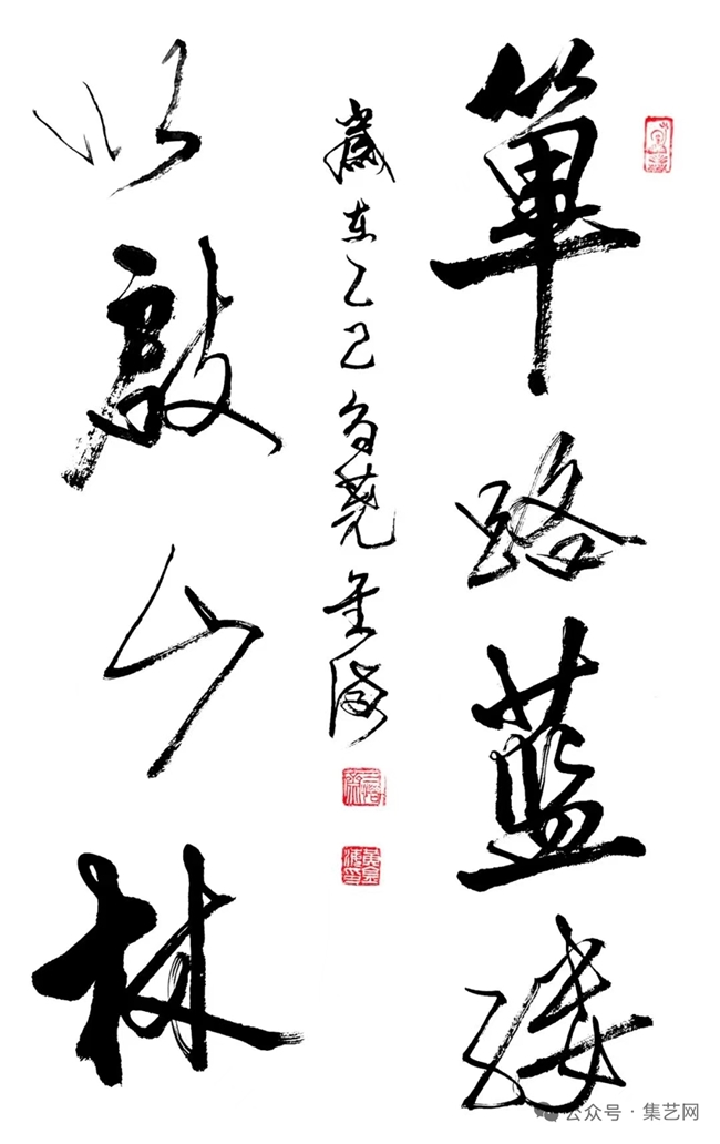 书协主席孙晓云对黄金海书法作品的评点:黄金海作品,观其力而不失,身姿展而不夸,笔迹流水行云,並将所学之法转换到创作中,並且大胆释放性情,大小兼施,疏密並用,呈现出一定节奏旋律,营造了艺术气息,创作理念,难能可贵。