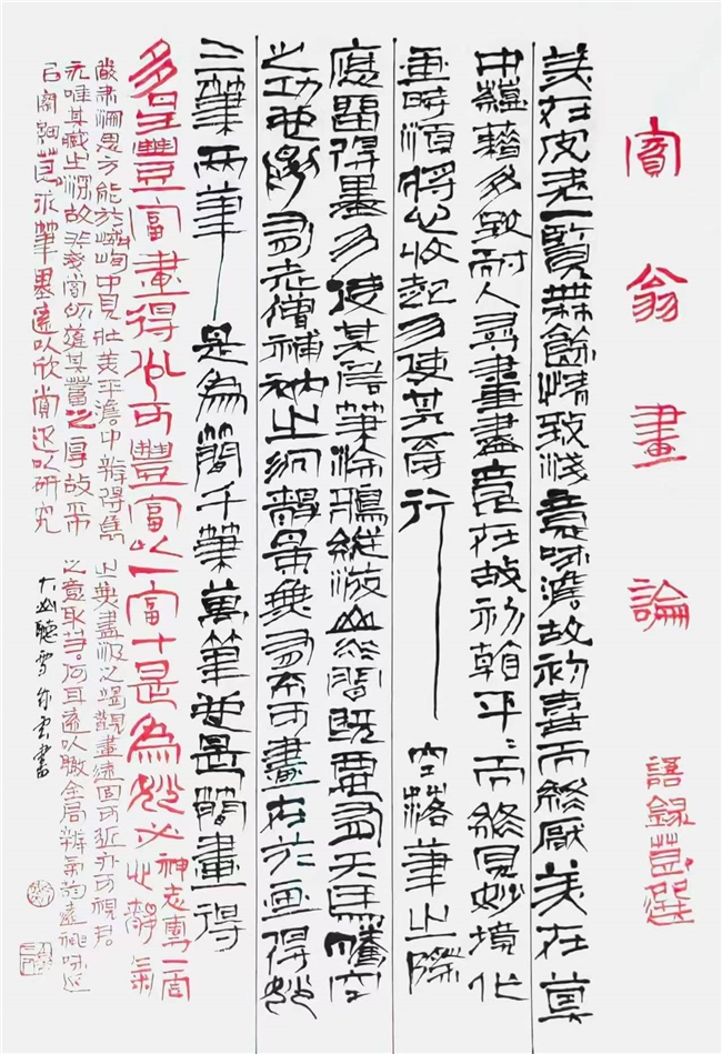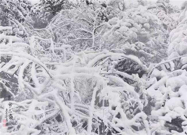 古人云:“痴书者,文必工,痴艺者,技必良”多年来余成云静心习艺,走进大自然,在大自然中汲取营养,获取灵感。他要求自己的每幅作品都有独特的艺术创意,独到的生命追求,独具的精神风骨,给人以精神的鼓励,艺术的享受。在他的不懈努力下,其书法、美术各具造诣、齐头并进。美术方面余成云的山水、花鸟、人物、写意、工笔、剪纸、木刻、瓷盘画各领风骚。在书法方面余成云六体皆能,尤其是他笔下的雪景高洁、质朴、深沉、凝重,大气磅礴,栩栩如生,叹为观止,生动描绘出雪后山林庭院、花草树木,仅仅靠墨色的浓淡变化,留白就能表现出雪的平静冷凝之态。其雪中之树更具深郁寒峭之意,其构图精巧,意境悠远,或自出机杼,独具匠心,似有“人在画中行,画在景中游”之美感,每一笔都蕴含着激情与生命,自成一派,极具收藏价值。