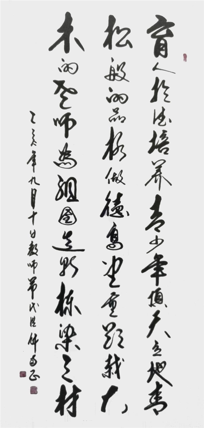 育人与德培养青少年顶天立地青松般的品格,做德高望重,欲栽大木的老师,为祖国造就栋梁之材。