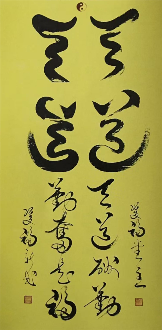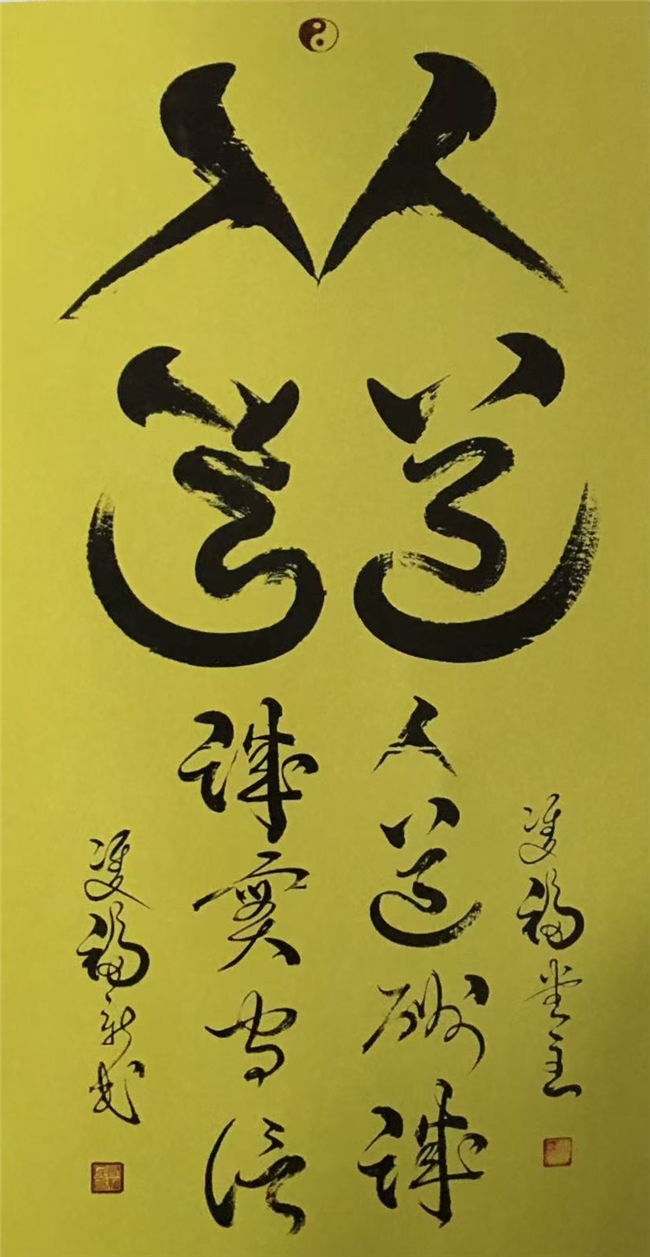 尉新民的双笔书法,是传统根脉与现代创新的完美结晶。他深耕二王、米芾、王铎、董其昌等历代名家精髓,深谙“双钩廓填”这一古老书法技艺的神韵,却突破古人摹写复制的局限,开创“双笔同挥,镜像奇品”的独特范式。这种风格既延续了传统书法的气韵生动与用笔精妙,又融入现代艺术的创新思维,形成“气韵生动、用笔巧妙、聚天地灵气,创艺术奇迹”的鲜明特质,让这项古老技艺焕发新时代光彩。