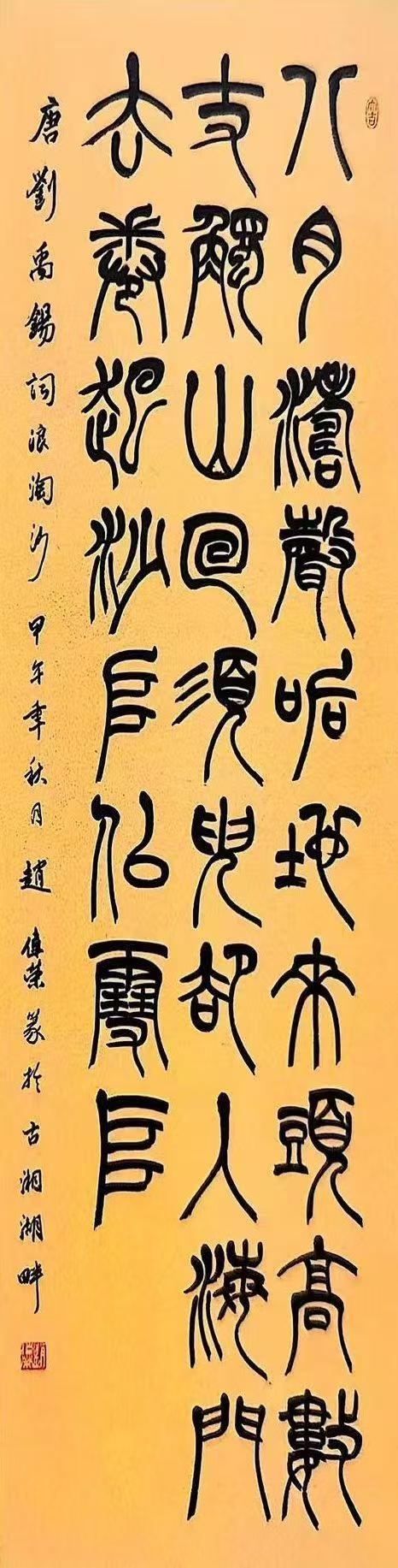 赵伟荣,男,1967年出生,中国共产党党员,浙江杭州萧山人。现为浙江省书法家协会会员,浙江省甲骨文学会会员,浙江省书法教育研究会会员,浙江省科普艺术协会理事,杭州市书协篆书专业委员会副主任,萧山区书法家协会理事。入选2022 年、2024 年浙江省书协篆书百家。