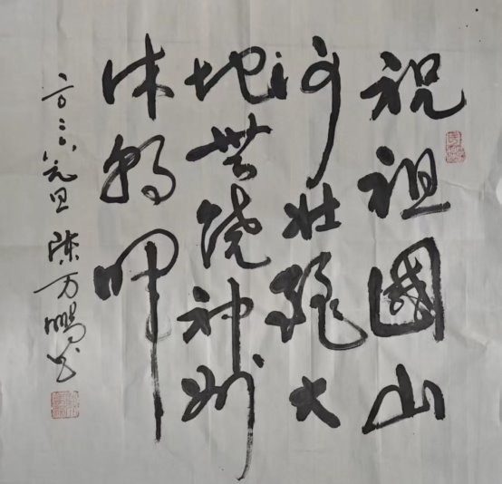 释文:祝祖国山河壮丽,大地丰饶,神州沐朝晖。