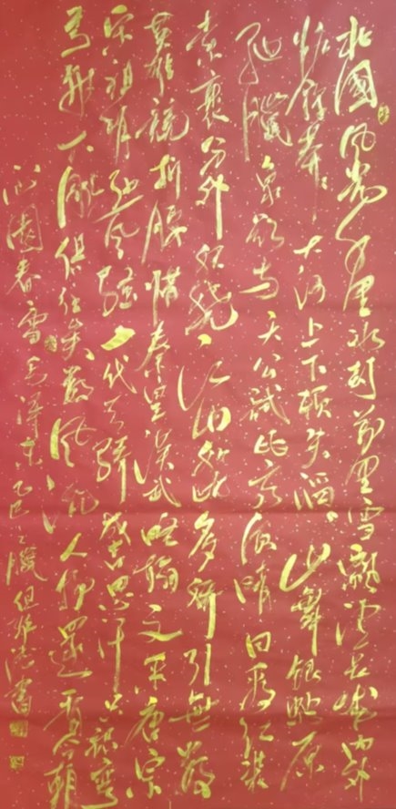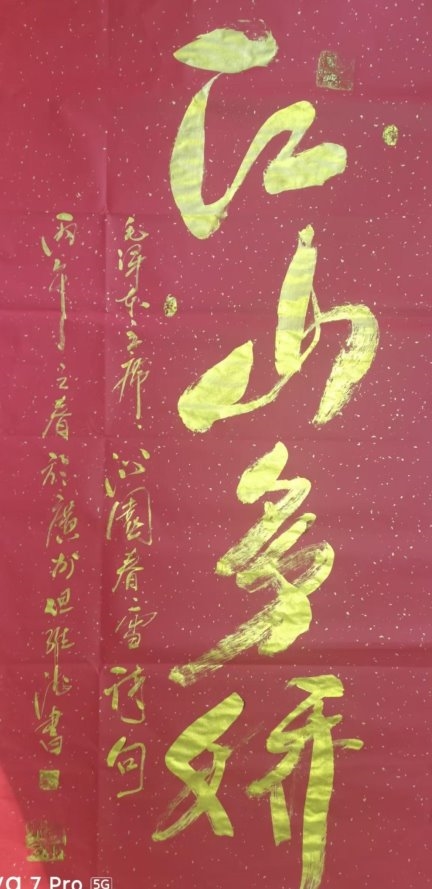 2025年1月18日其作品在中国——东盟国际文化艺术系列活动中参展,在人民大会堂参加活动。步入金色展厅获得金质奖杯一樽,金奖证书受到表彰,被授予艺坛巨匠“时代功勋人物”。