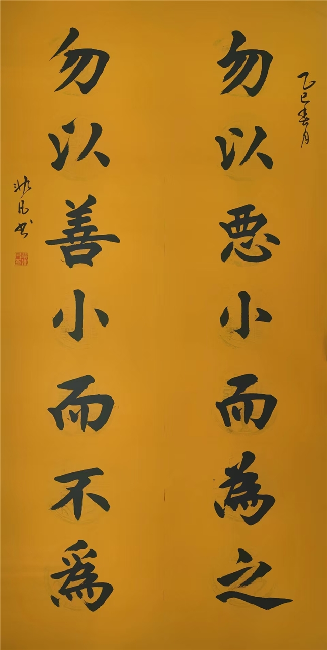 2024年9月,他创作的书法作品《乘风破浪》更是被国家游泳中心(水立方)烧制成艺术砖,装饰在中心大厅,彰显出极高的艺术价值。此外,还有多幅书法作品得到国家和澳门邮政部门的认可,准予出版发行具有“国家名片”美誉的邮票、邮品和大型文献邮册;