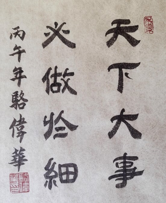 笔墨无言,初心有声。骆伟华数十年深耕书法艺术,以经典为基,以初心为引,在笔墨世界中坚守文化本真,在探索创新中彰显艺术个性,既练就了深厚的笔墨功底,也铸就了独特的艺术风格,更扛起了传承传统书法艺术的责任担当。如今的他,依旧在书法艺术的道路上笃行不怠,相信未来,他必将以更精湛的艺术造诣,创作出更多兼具思想性与艺术性的佳作,为当代书法艺术的发展注入更多活力,也让传统书法文化的魅力在新时代持续绽放光彩。