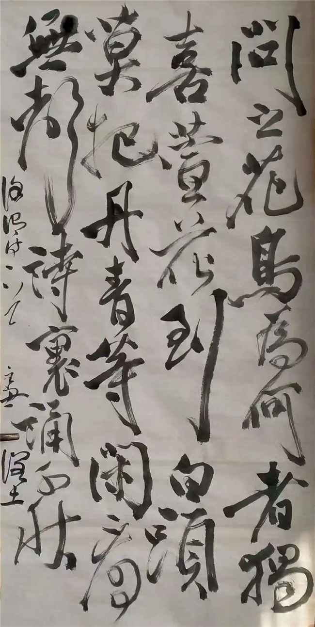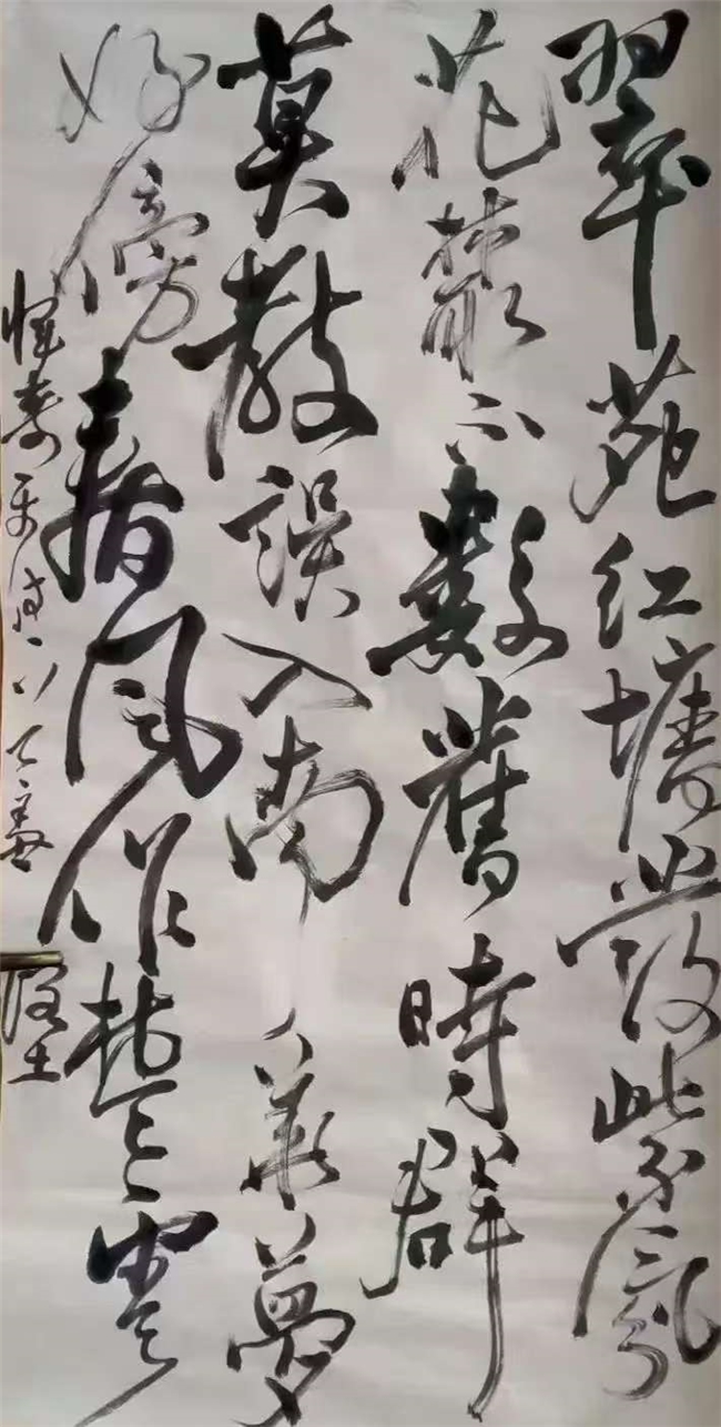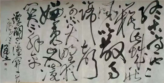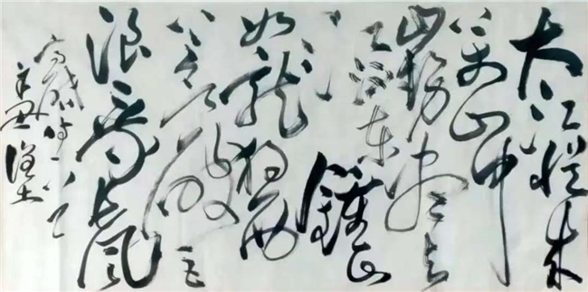 艺术造诣较高的狂草作品必然是蕴含丰富深刻的文化内涵和具備圆融深厚的艺术脩養,既有根植经典的优秀传统神韻,又有突破標新的時代引领氣息,并与狂性唯我適性忘我的精神境界相契合,滌荡汹湧澎湃喷薄欲出的艺术构思,迸发妙機其微瞬息萬變的艺术靈感,闪动多维的艺术元素,轻拈娴熟的艺术手法,锤煉精彩的艺术语言,再现的丰富的艺术想象,表达强烈的艺术个性,抒发深广的艺术情怀,張顕独特的艺术观念,开拓絢爤的艺术视野,探賾濃厚的艺术趣味,展现卓越的艺术表现力,营造震撼的艺术感染力,焕发鲜活的艺术生命力,从而达到高妙的艺术境界,带来高级的艺术享受。