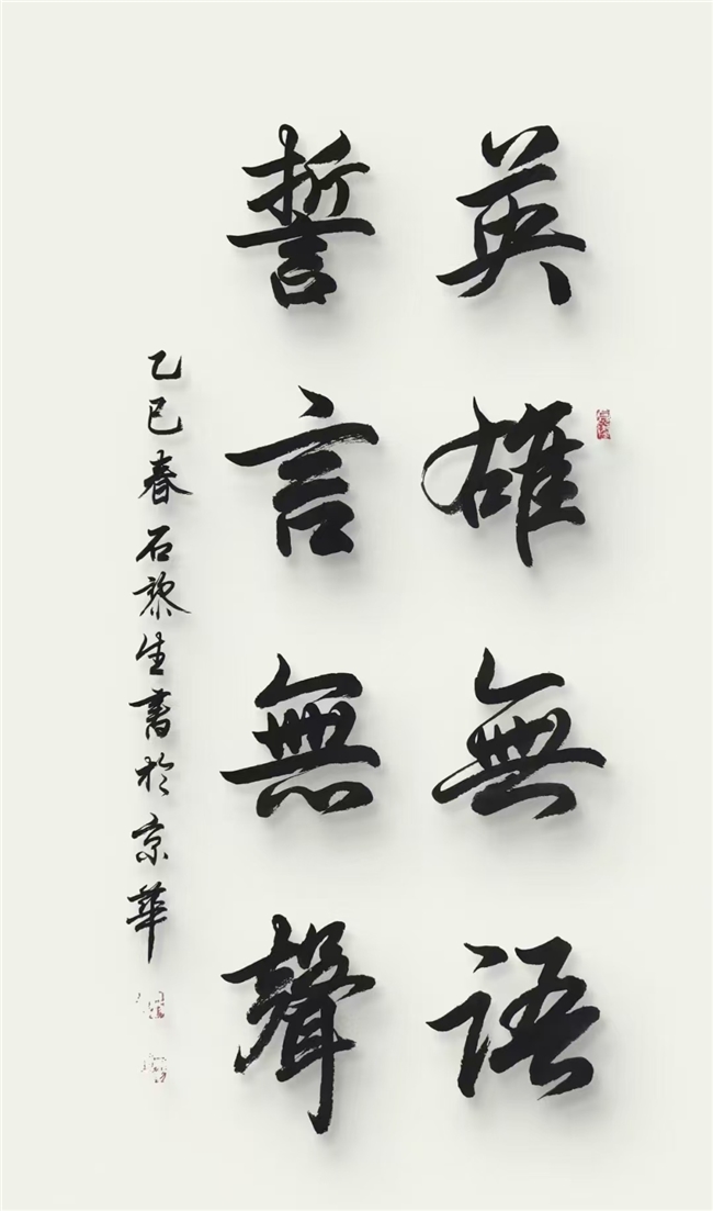 2025年9月13日,石黎生携百长卷《道德经》亮相北京服贸会,这幅作品沿美术馆旋转大厅盘旋而上,气势恢宏,如盛世腾龙,一飞冲天。他的笔墨酣畅淋漓,既精准复刻了传统书法的精髓,又以当代艺术语言实现了对中华文化精神内核的诠释。不仅与服贸会国际酒会相映成趣,也为这场聚焦服务贸易的盛会注入了浓厚的文化底蕴,更成为服贸会在文化领域探索跨界融合的一次有益尝试,传递出当代艺术工作者“以笔墨为媒,让传统走向大众、走向世界”的责任与担当,为推动中华优秀传统文化创造性转化、创新性发展注入了新动力。